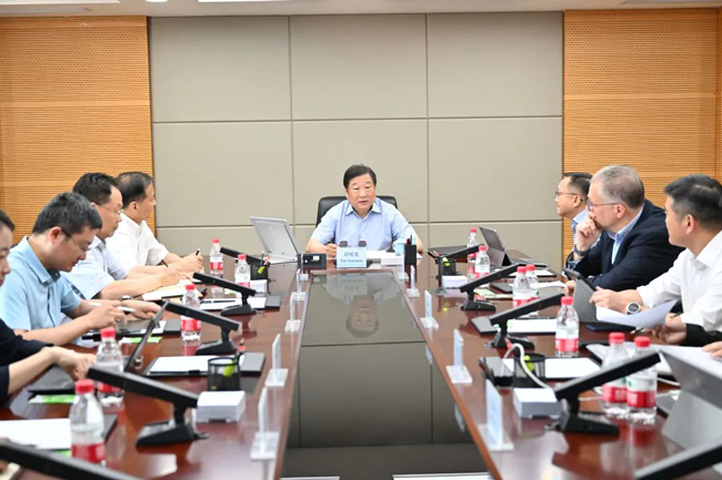 On the afternoon of June 24, 2022, Tan Xuguang listened to the work report of the KION China team, the Dematic China team and the operation of the Jinan project in Jinan.