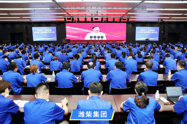 At 8:30 a.m. on August 1st, 2022, Shandong Heavy Industry Group held a conference of all leading cadres to implement the spirit of General Secretary Xi JinPing's important speech at the special seminar for provincial and ministerial level leading cadres and the important instructions and requirements for the work in the second half of the year made at the meeting of the Political Bureau of the CPC Central Committee on July 28th. A total of 2400 leading cadres of the group headquarters and affiliated companies synchronously attended the conference online and offline.