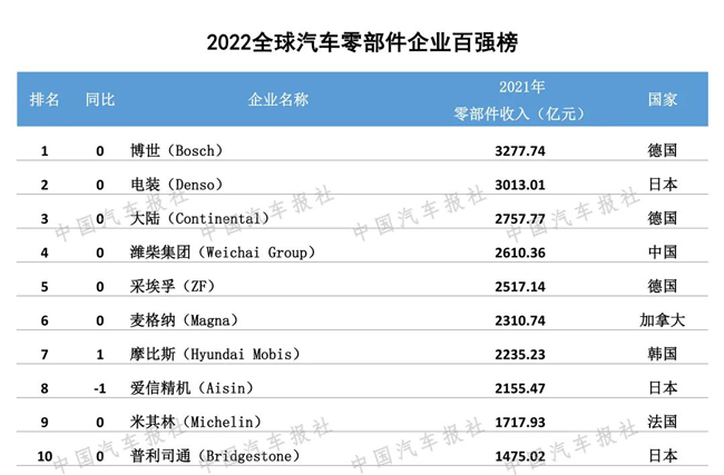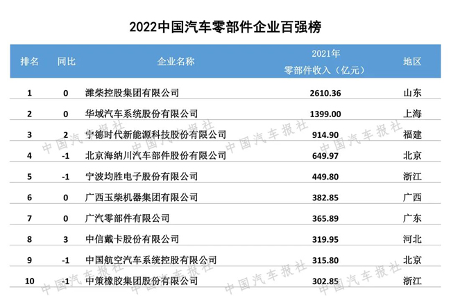 Weichai Tops the List for Six Consecutive Years | "2022 Top 100 Chinese Auto Parts Enterprises" List Released