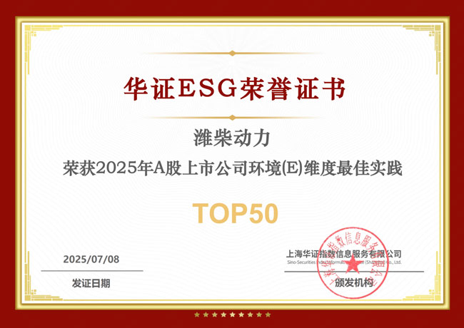 Recently, Weichai Power has at once received two major ESG honors - being included in Huazheng ESG's "TOP50 Best Practices of A-share Listed Companies in the Environmental (E) Dimension 2025" list and being awarded the "Golden Grid Award - ESG Social Responsibility Excellence Enterprise" by Gelonghui, marking that Weichai Power's outstanding practices in sustainable development have been highly recognized by authoritative institutions.