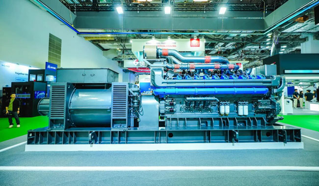 As the world's first 5MW high-speed diesel gen-set, this product is powerful and globally leading; Redundant start design ensures fast start, high reliability, and safeguards power safety in data centers; With Weichai's self-developed ECU and the application of powerful self-developed strategies, data security is guaranteed; Equipped with an intelligent control system, it can be widely applied in scenarios such as large computing power centers and cloud service data centers, attracting many guests to stop by.